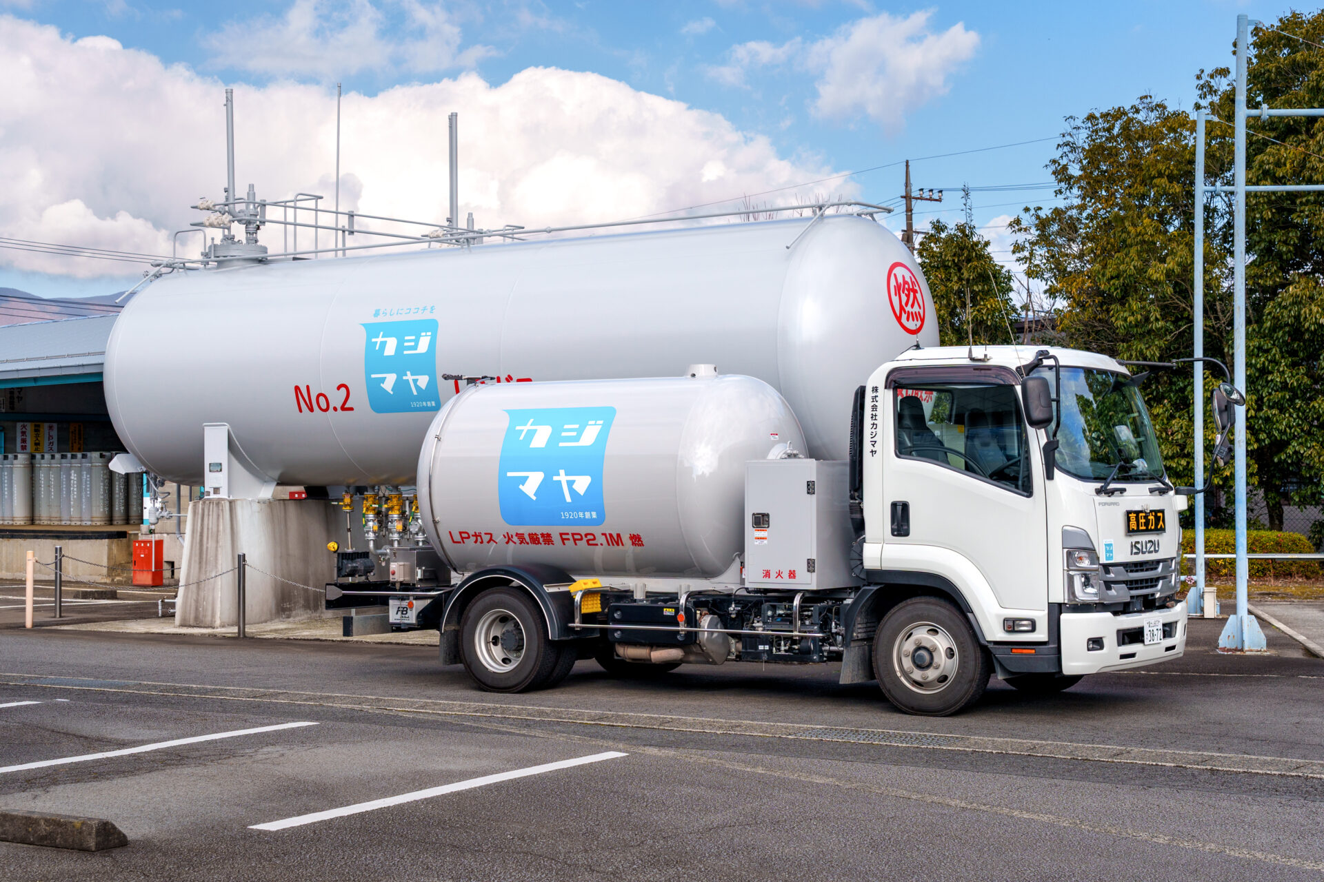1920年に鹿島屋商店を設立。以前から取り扱っていたお米の他に、雑貨や薪炭の販売を開始したのがカジマヤの始まりです。1954年には、御殿場・小山地域で一番早くに御殿場プロパンガスを設立。LPガスの配達だけではなく、「お風呂のお湯が出ない」「ガスコンロの具合が悪い」といった専門的なお困りごとに「迅速・親切・丁寧」に応えていくことでお客様との信頼関係を構築し、現在カジマヤの主力事業となっています。